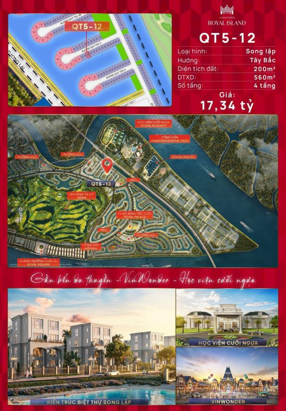 - Vị trí: Gần sân Golf, gần Học viện cưỡi ngựa Hoàng Gia, gần Công viên chủ đề Vinwonder & Safari, Bến du thuyền
