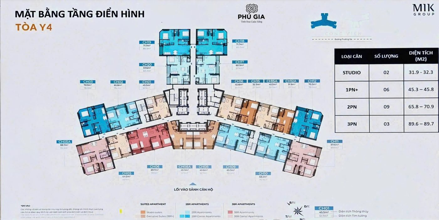 - Mật độ căn hộ/sàn: 20 căn