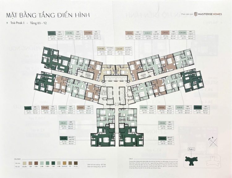 - Loại hình căn hộ: Studio/1PN/1PN+/2PN/2PN+/3PN/3PN (Lift)/4PN (Lift), Penhouse, Duplex