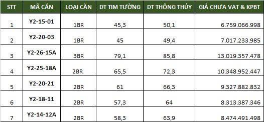 - Căn hộ 2PN: 60-65m giá từ 9.2-11.5 tỷ