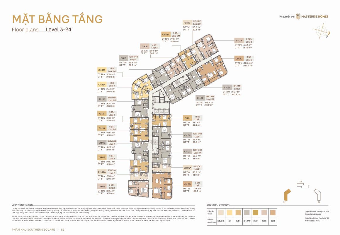 Mặt bằng Layout toà S3 phân khu Southern Square: