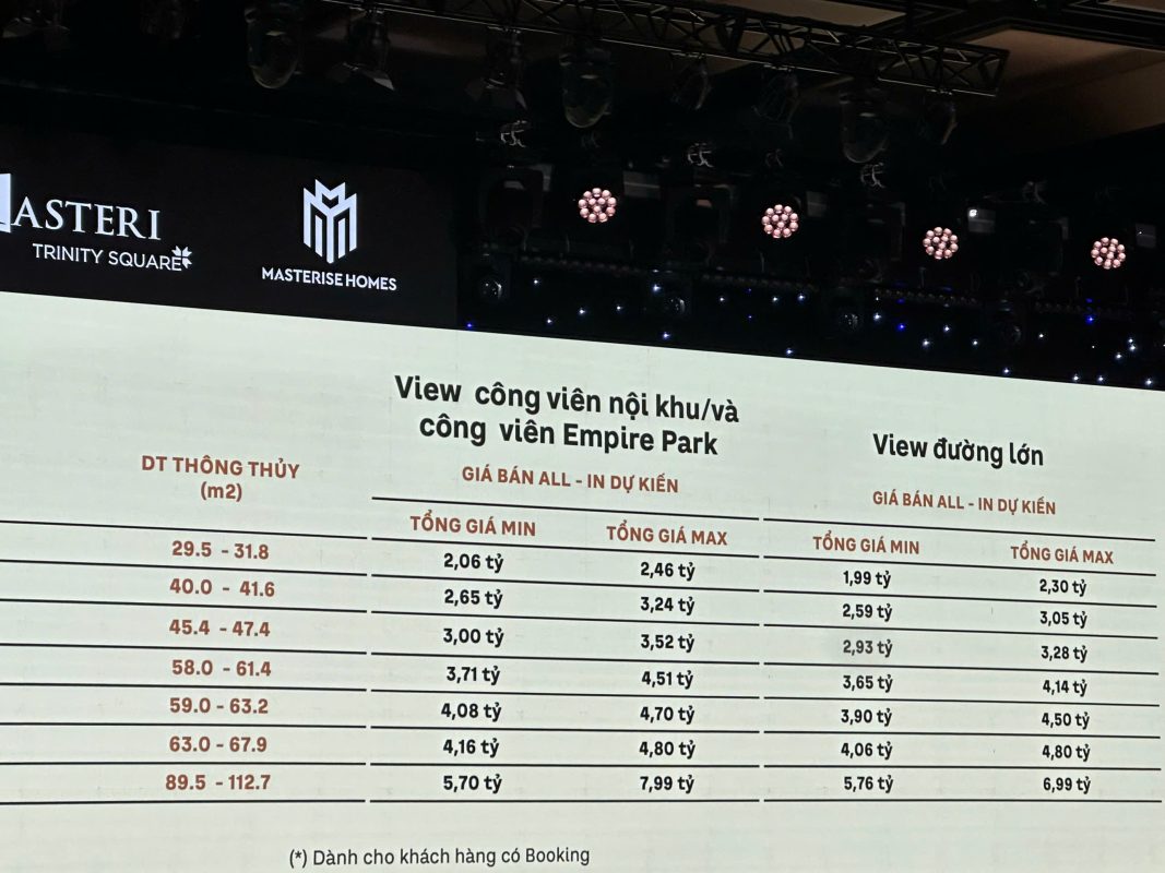 Bảng giá và chính sách bán hàng căn hộ Masteri Trinity Square